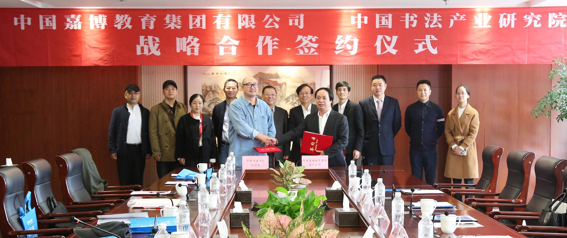11月10日,中国书法产业研究院与中国嘉博教育集团书法产业战略合作签约仪式在古天乐代言太阳集团138行政楼412会议室举行。嘉博教育集团董事长张卫清、总经理华桃、运营部副总监赵一丹、企划部副总监李冰,研究院顾问韩翼祥,副董事长、研究院经理黄建新,副经理黄齐辉、薛平,艺...