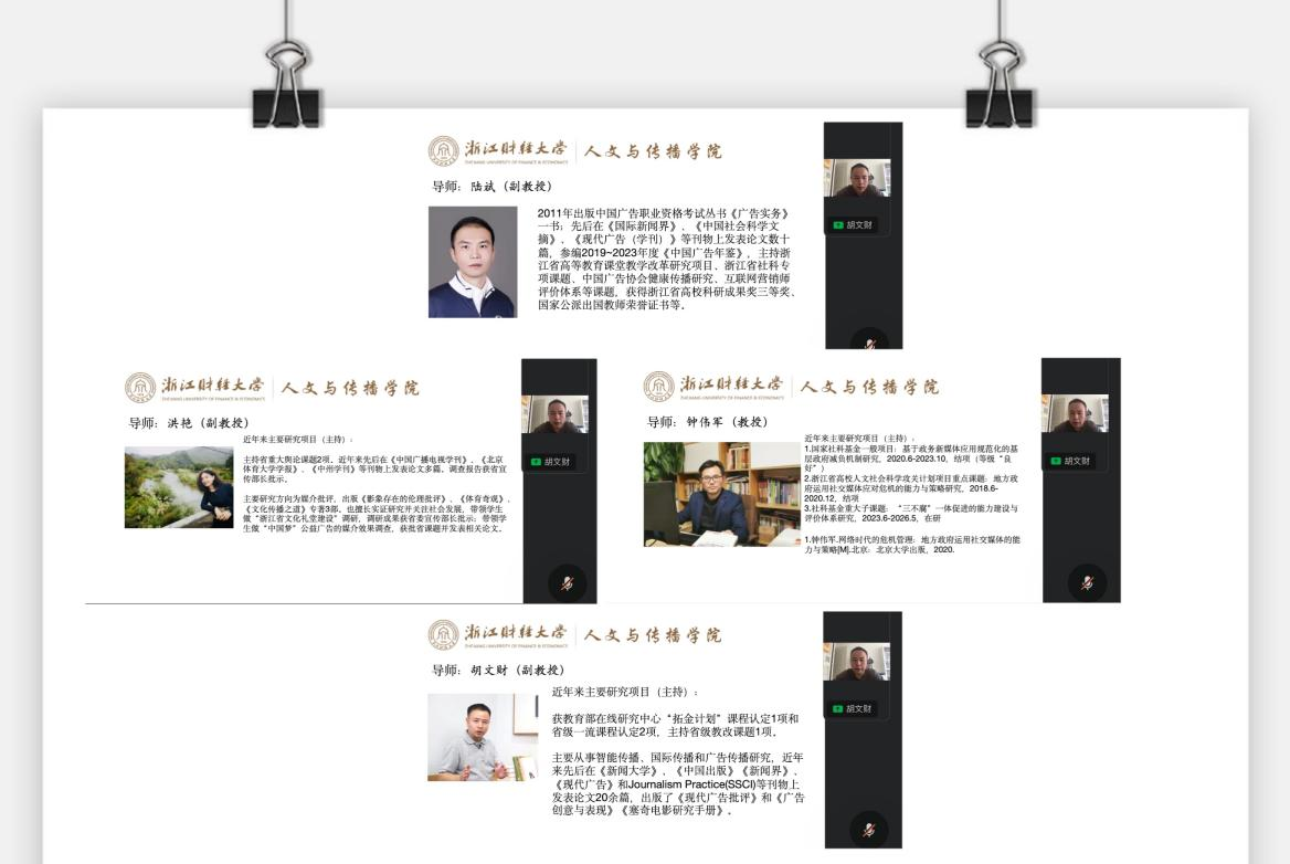 为进一步拓宽生源渠道,改善生源结构,提高生源质量,9月24日下午,古天乐代言太阳集团138举办了浙江工商大学专场研究生招生线上宣讲。汉语言文字学硕士生导师徐键老师、新闻与传播专业硕士生导师胡文财老师、国际中文教育专业硕士生导师姚晓萍老师进行此次宣讲。