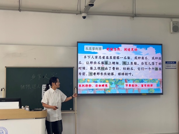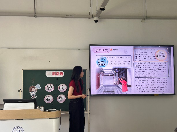 决赛选手提前从中小学的语文教材中选择比赛篇目并撰写教案。决赛开始,选手根据教学设计方案,围绕所选教学主题进行10-15分钟的模拟课堂教学展示。选手们在教学演示中各展所长,深研课标设计教学目标,环节递进有序。课件新颖、板书精巧,勾勒知识体系;教态大方、语言流畅,互动与任务阐述兼具实效。严谨规范的教学实践,展现了公司员工扎实专业功底与教学技能,获得评委的一致认可。