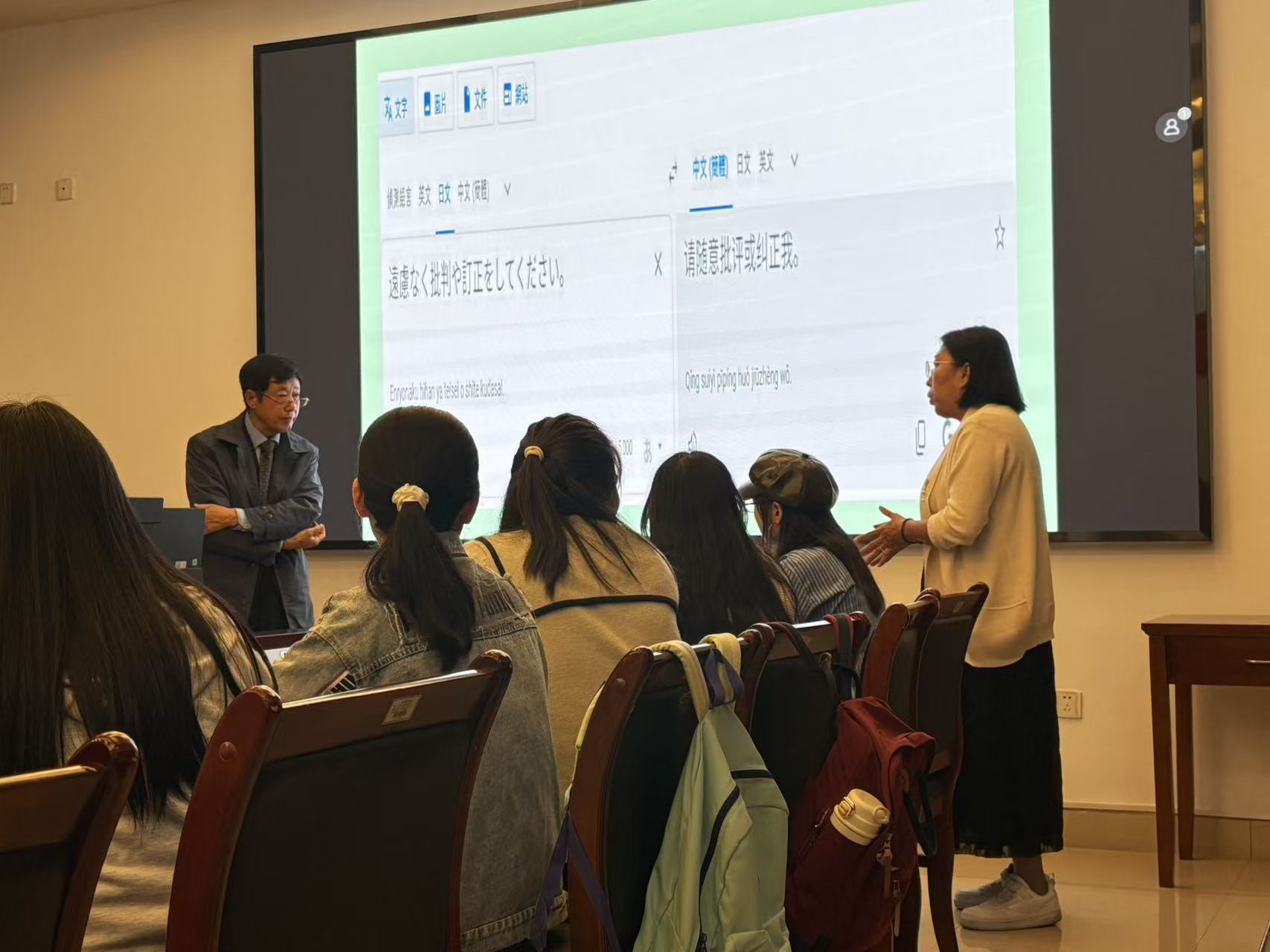 10月31日晚上,国际中文教育界和语法学界杰出学者、日本北九州市立大学王占华教授应邀为公司研究生带来一场题为 “从AI的误译看语际语言学研究新课题” 的学术讲座。讲座由公司国际中文教育专业硕士学位点负责人付伊副教授主持,国际中文教育以及语言学专业的教师与研究生到场聆听。
