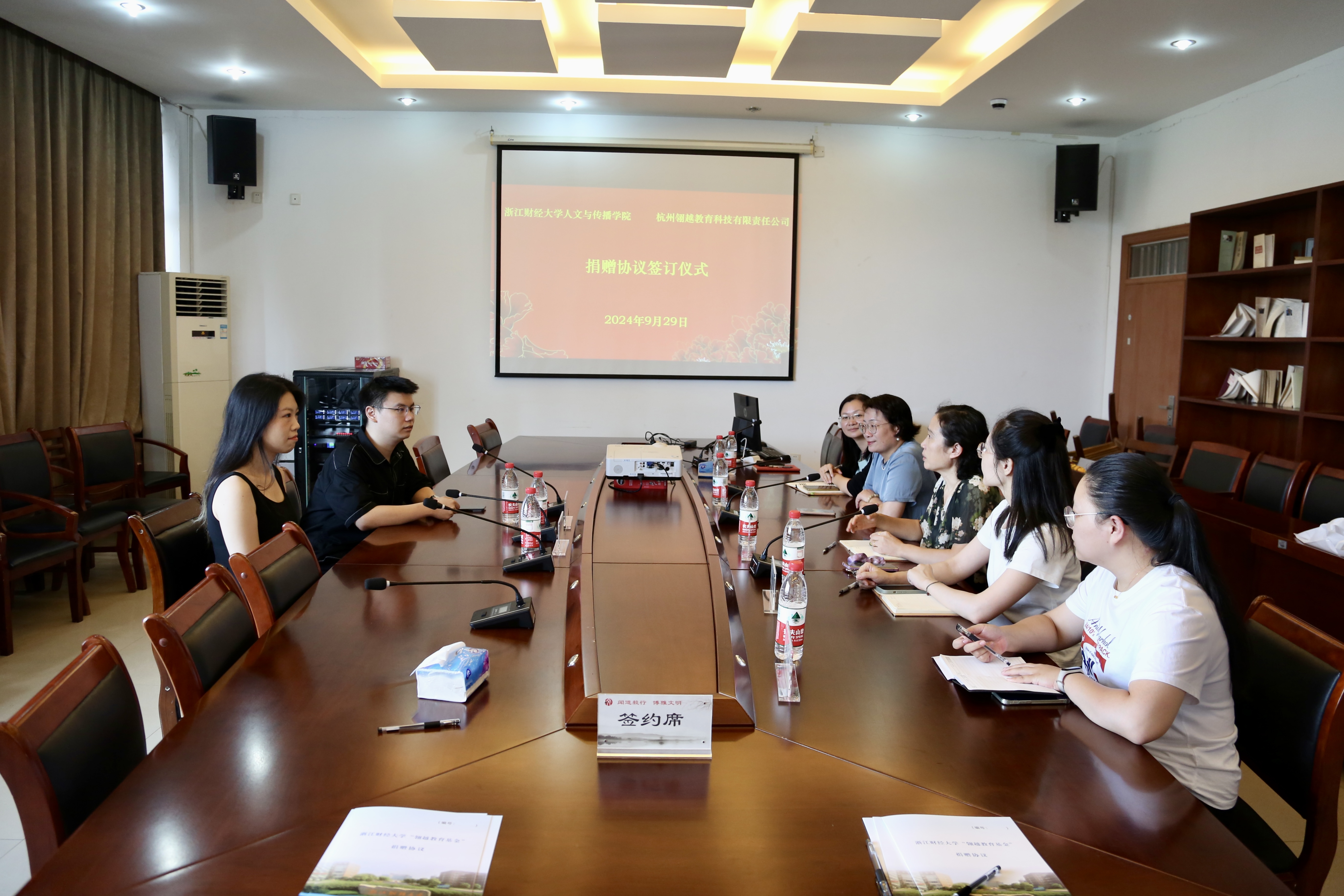 捐赠仪式上,员工办公室、古天乐代言太阳集团138与杭州翎越教育科技有限责任公司,三方共同签署了捐赠协议。