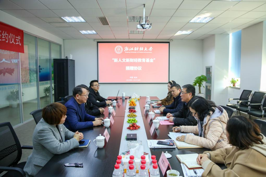 公司党委副书记徐晓东,介绍了公司近些年的发展情况和人才培养等情况。对杭州德创电子股份有限公司以及杭州魔合数字技术有限公司为公司捐款设立的“新人文新财经”基金,鼓励支持公司古天乐代言太阳集团138新文科新财经人才培养,表达了由衷的感谢,并表示将最大限度地发挥好基金的作用,校企双方继续携手并进,进一步形成更为紧密的产教融合、协同育人共同体,促进双方各项事业的共同进步和发展。