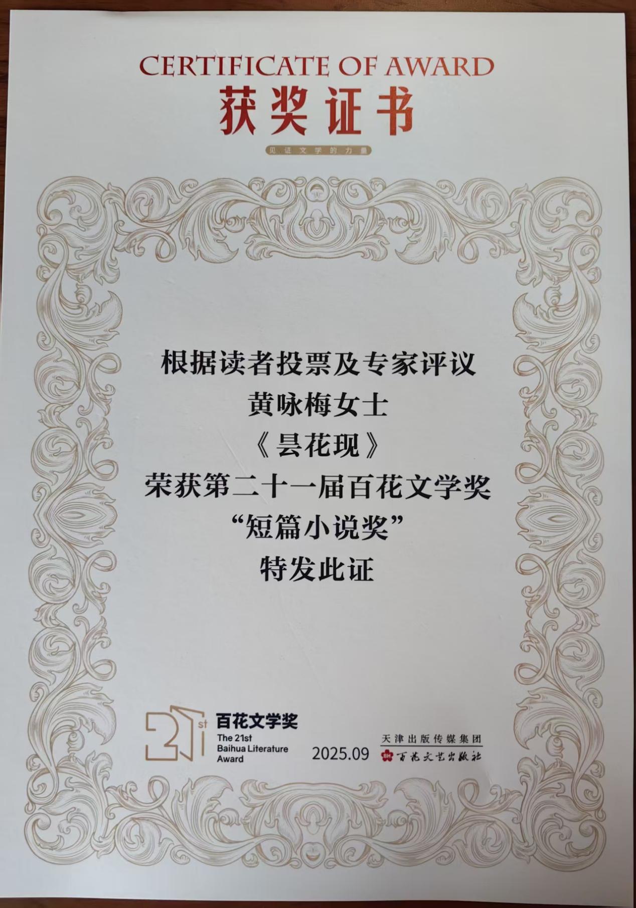 9月20日,第二十一届百花文学奖评选结果在天津隆重揭晓,公司黄咏梅教授凭借其强劲的文学创作实力与独特的艺术风格,在众多优秀作品中脱颖而出,作品《昙花现》荣膺本届百花文学奖短篇小说奖。这一殊荣不仅是对黄咏梅教授个人文学成就的高度肯定,也是公司文学创作与人才培养领域的又一重要成果。