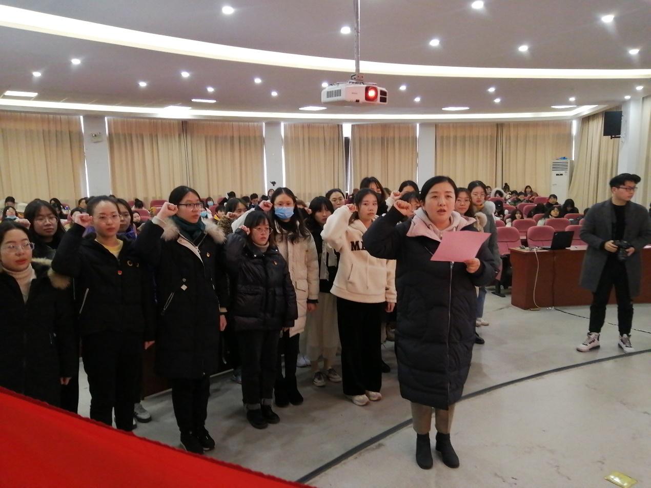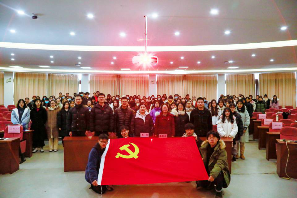 仪式伴随着嘹亮的《国际歌》拉开序幕,专职组织员张旭老师宣读参加宣誓的预备党员名单和转正党员名单后,老党员代表上台为新发展党员佩戴党徽,并在党委书记高燕的带领下庄严宣誓,郑重向组织表达了为共产主义事业奋斗终身的决心和承诺。
