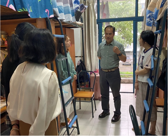 在走访员工公寓的过程中,王奎泉认真听取并解答了同学们在学习生活、升学就业就业方面的困惑,在生活中早睡早起自律自强,多吃食堂少点外卖;在学业上求知善读贵耳重目,脚踏实地进行学习计划,努力成为志存高远,广学深思的新时代青年。并嘱咐同学们疫情期间出行注意安全,有需要及时向公司老师寻求帮助。
