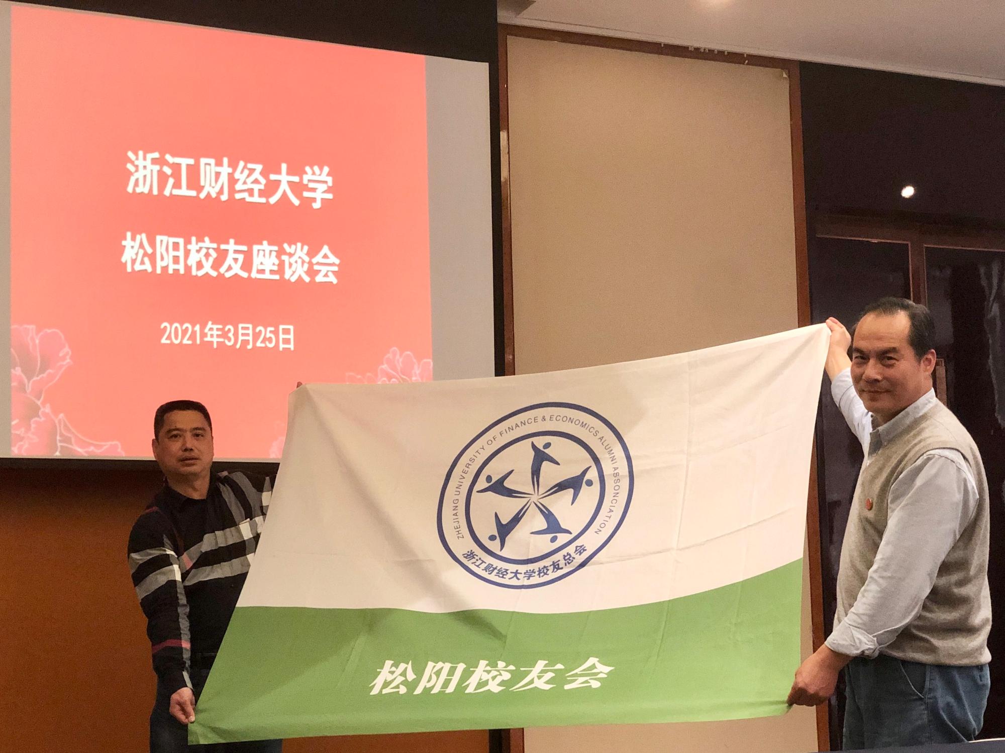 会议通过了松阳员工会理事会增补名单,王奎泉为新一任理事会成员颁发了聘书并授旗。会长叶岳泉向母校介绍了松阳员工目前的分布情况,并表示将竭尽全力服务员工、服务母校、服务社会,为员工会事业发展增光添彩。