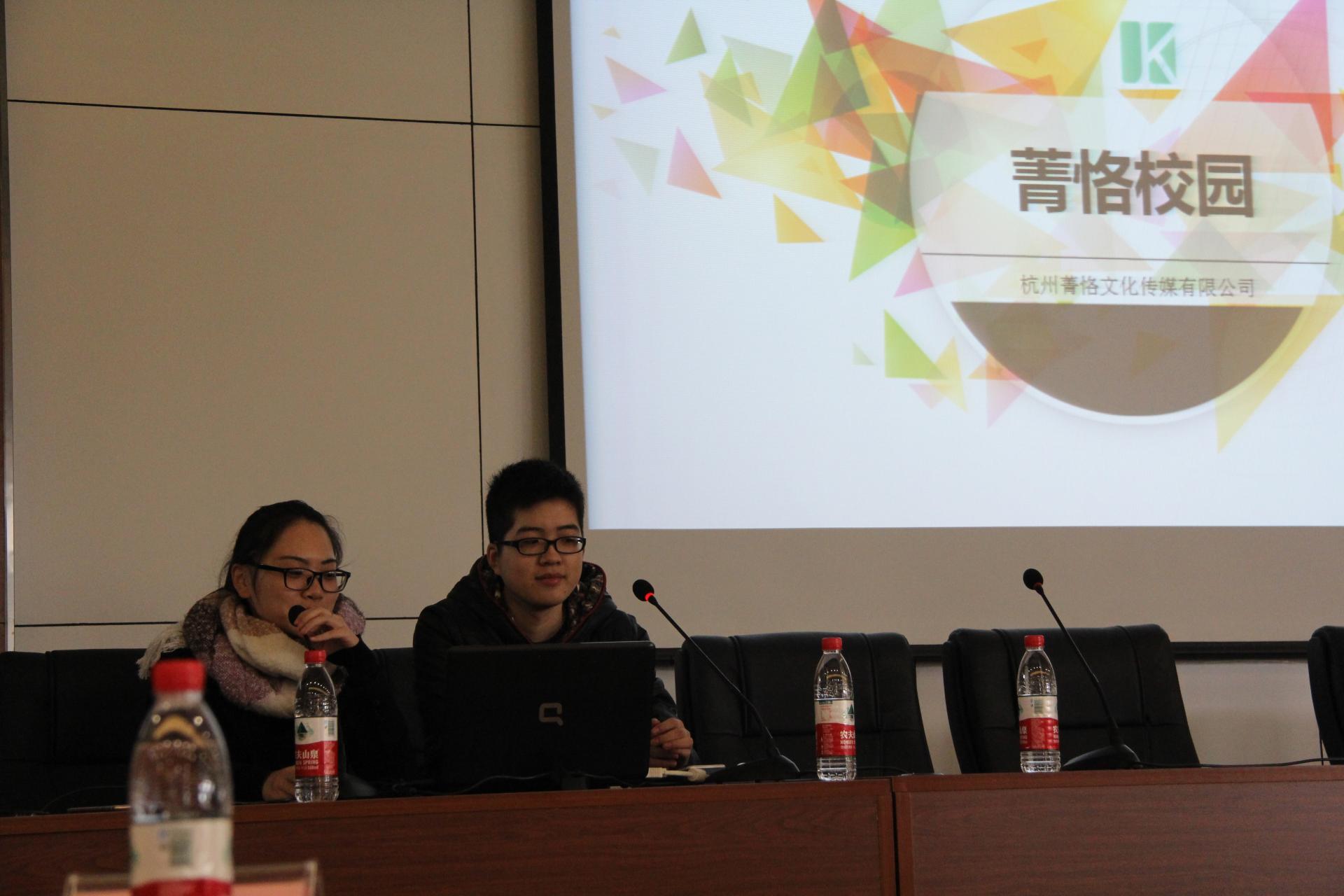 会上,“云书”团队向同学们分享了项目概况、创业心得和体会,告诉同学们创业不仅仅是一个不断学习和实现个人价值的过程,而且还是实现社会价值的过程。“菁恪校园”分享自己团队创业的组建和发展过程。“游集市”团队分享了作为一个旅游微平台,讲述了老员工创业过程中遇到的难题,以及解决的方法。接着,三个团队与公司员工进行了互动交流,详细解答了同学们在创新创业方面遇到的困难和问题。