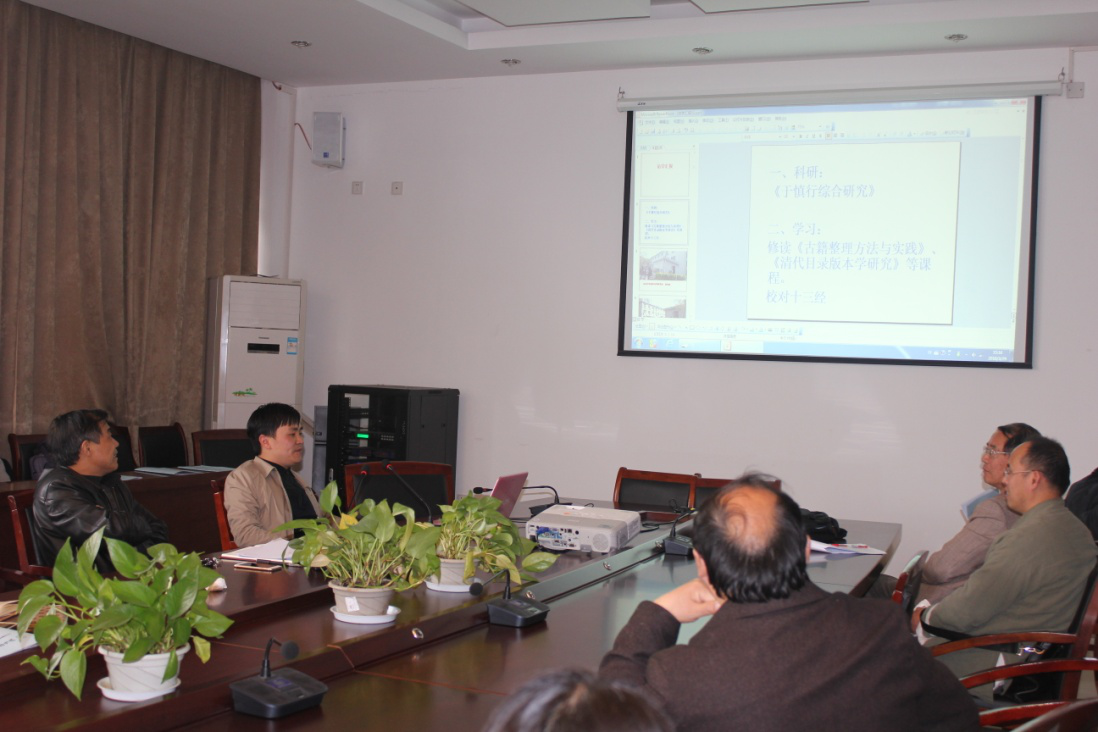 交流会上,从北京语言大学访学归来的孙德平老师从六个方面讲述了他在北语的访学过程和收获,参与了《中国大百科全书》语言文字学科词条的编撰,并完成了4篇论文的撰写。从英国格拉斯哥大学访学归来的洪艳老师图文并茂的从风土人情、建筑风格、艺术作品、人文情怀等方面介绍了她在英国访学期间对文化传播研究的成果和感悟。从安徽大学访学归来的王明建老师则分享了他在安徽大学访学授课的经验以及对专业教学的思考。从山东大学访学归来的范知欧老师讲述了其在山东大学儒学高等研究院交流学习的过程,对中国传统文化研究有了更深层次的理解。