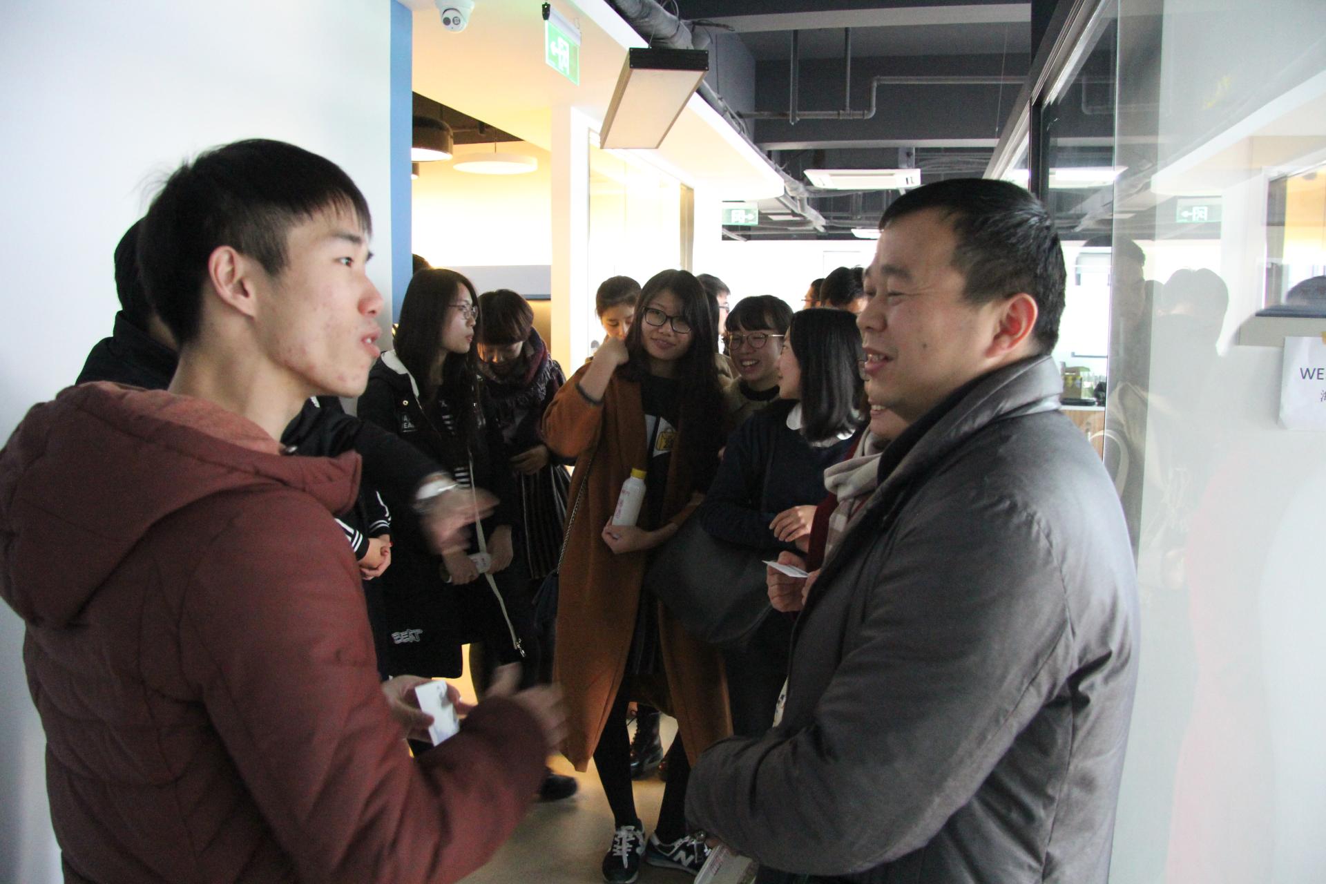 浙江清华长三角研究院杭州分院科技创新部副部长吴谦带领大家参观了研究院展厅,向我们介绍了整个分院的建设情况及创业项目,特别是他们目前重点发展的五个领域:大数据领域、电子商务领域、移动互联网领域、智能硬件领域,以及生命健康领域等。他又带领大家参观了正在孵化的企业、公司以及创客空间,大家近距离地与这些年青的创业者们进行了交流,同时也真实感受了一把创业的氛围。最后一站是带我们来到了浙江乾华泰豪文化创意股份有限公司,副总经理古国珍带领大家参观了企业,向大家介绍了企业对人才的需求及创业当中需要注意的事项,同学们深受启发。