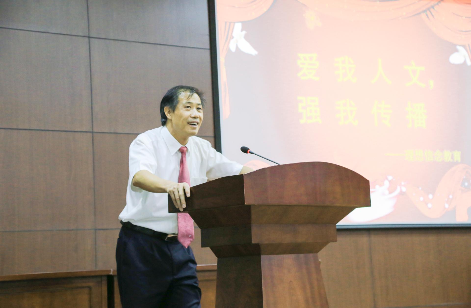 本次开学典礼分成两个部分举行,第一部分以员工为主,第二部分由经理何华珍老师与吴智斌、刘亚辉、陈静、王阿蒙和姚晓萍等5位教师一起给员工做以“爱我人文,强我传播”为主题的理想信念教育。