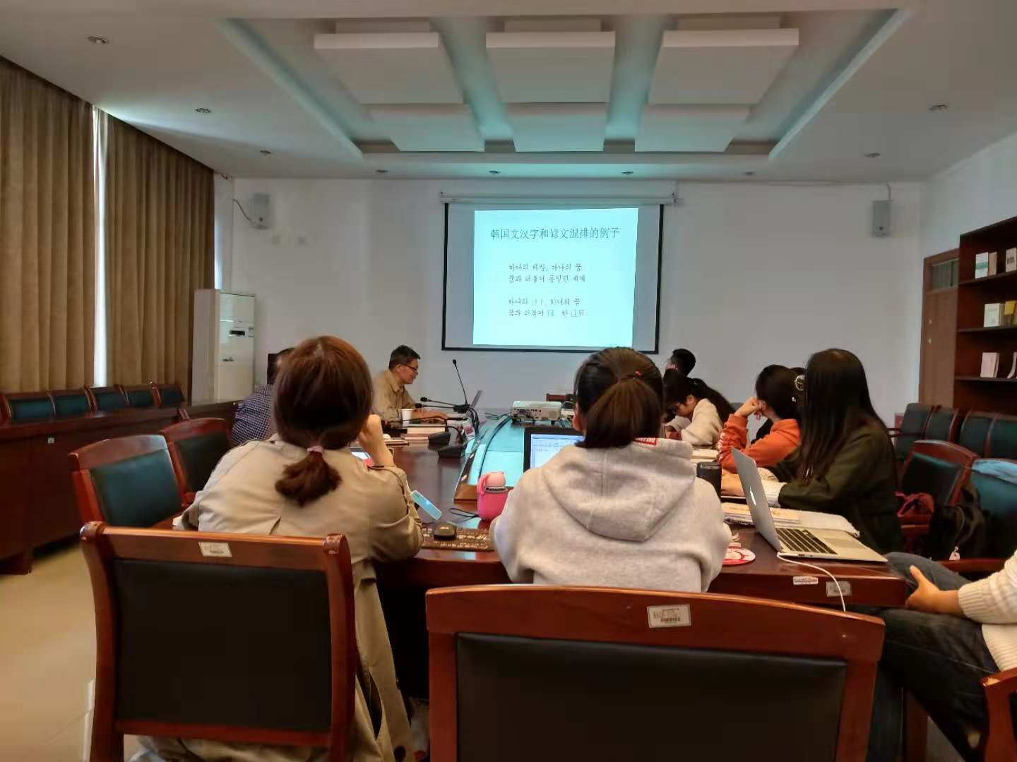 2018年10月24日下午,北京理工大学珠海公司图书馆高级馆员、多语言翻译家邓应烈先生应邀来工作坊进行座谈。此次座谈会由东亚汉字资源研究中心主任何华珍教授主持,工作坊有关师生参加了此次活动。