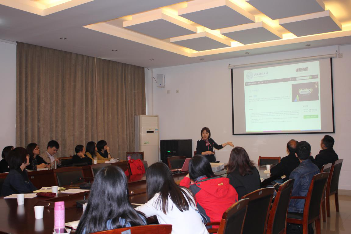 童老师以国家级资源共享课、省级MOOC 《财政学》为例,对MOOC的发展和在实践中的情况进行了讲解,并详细介绍了制作和建设的经验。骆老师向到场的老师介绍了目前公司已引进的现代教育技术和可实现的功能,并表示现教中心将尽全力支持一线教学工作,欢迎广大教师与现教中心多多交流。