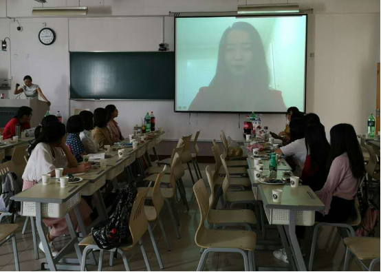 班会一开始,学业导师刘亚辉老师就通过微信视频连线正在新西兰担任国际汉语教师志愿者的公司17届毕业生陈盼盼,请她分享了自己考取北京师范大学汉语国际教育硕士,然后又以志愿者身份出国教学的经历和经验,分享了在新西兰的快乐教学和生活,激励新生们努力学习,提升自身的综合素质。
