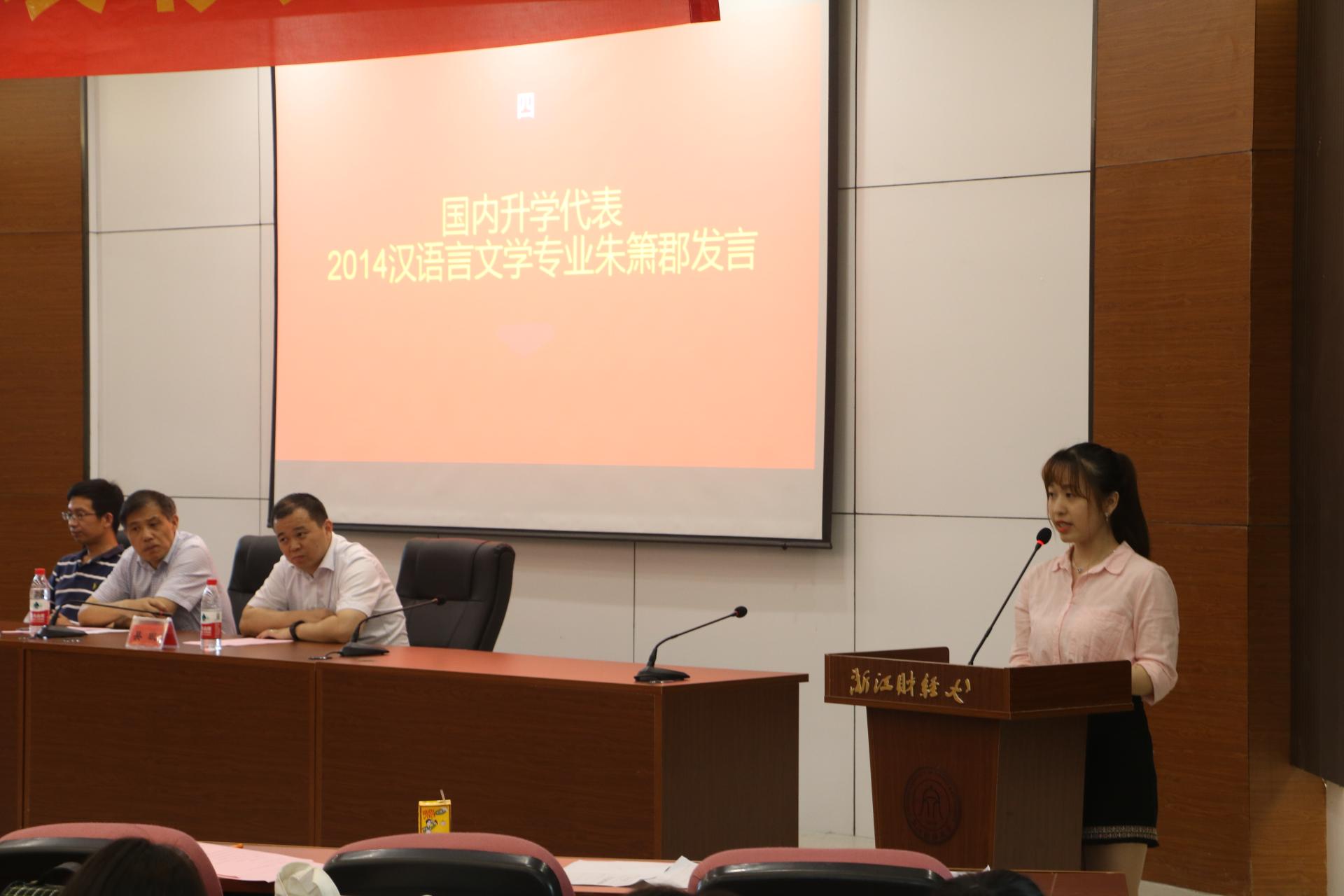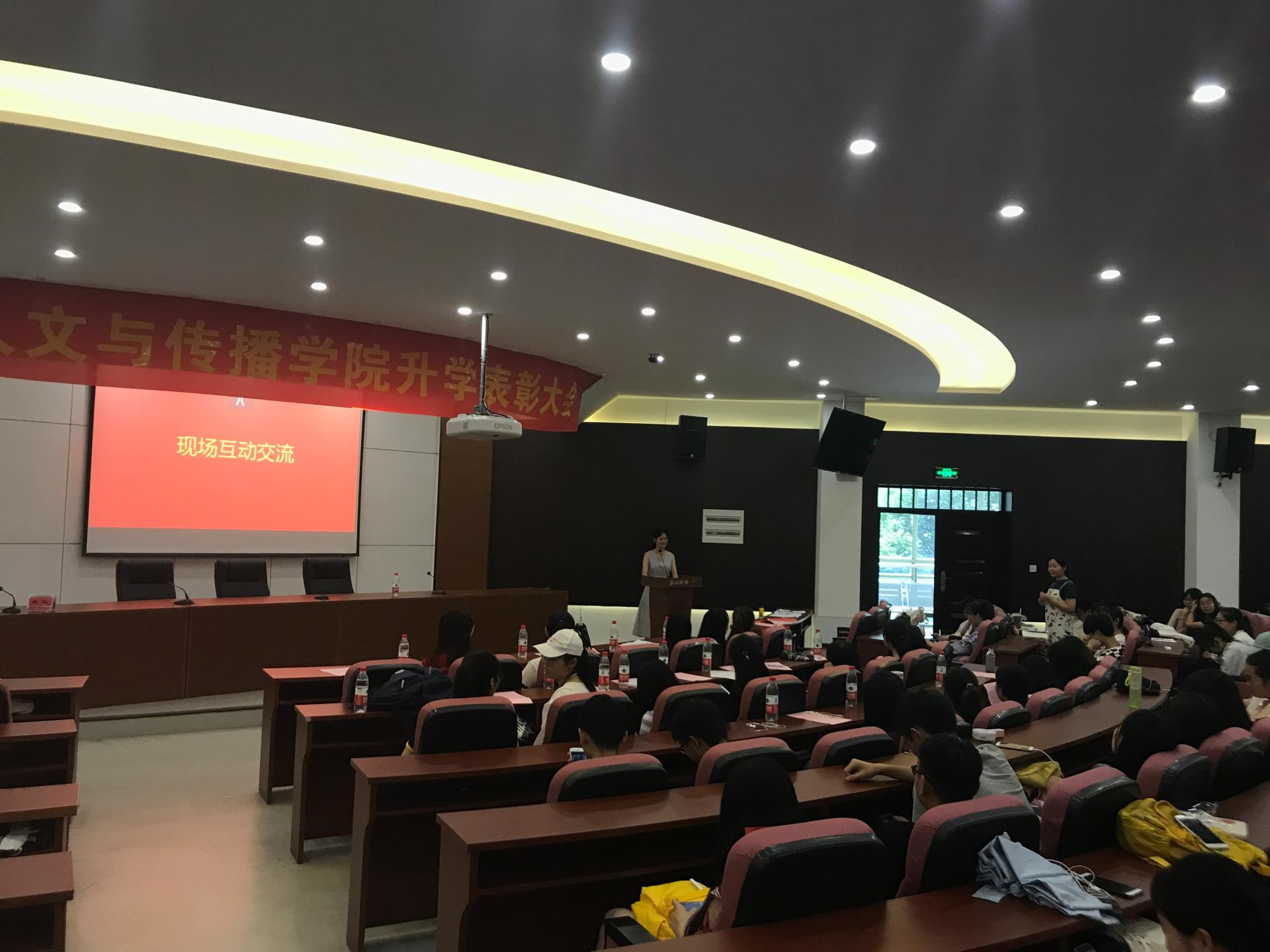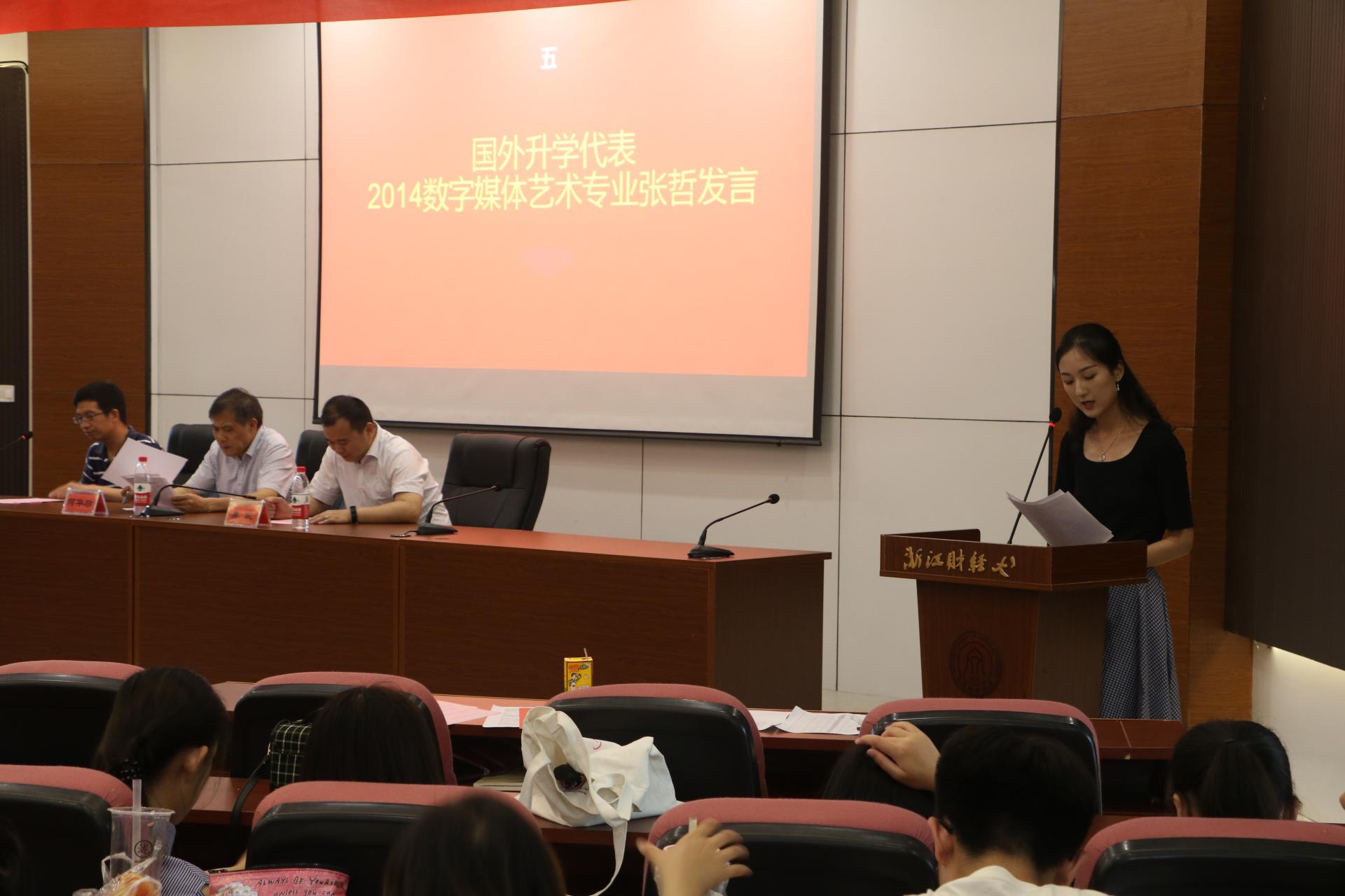 孙德平老师也对2018届考研(出国)员工表示祝贺,他希望同学们通过读书深造,给自己创造更多选择,追求并实现自己的梦想。2018届汉语言文学朱箫郡同学、2018届数字媒体艺术专业的张哲同学分别作为员工代表发言,分享了自己的心路历程和备考经验,为学弟学妹们提供了中肯实用的建议,并耐心解答了学弟学妹们提出的问题。