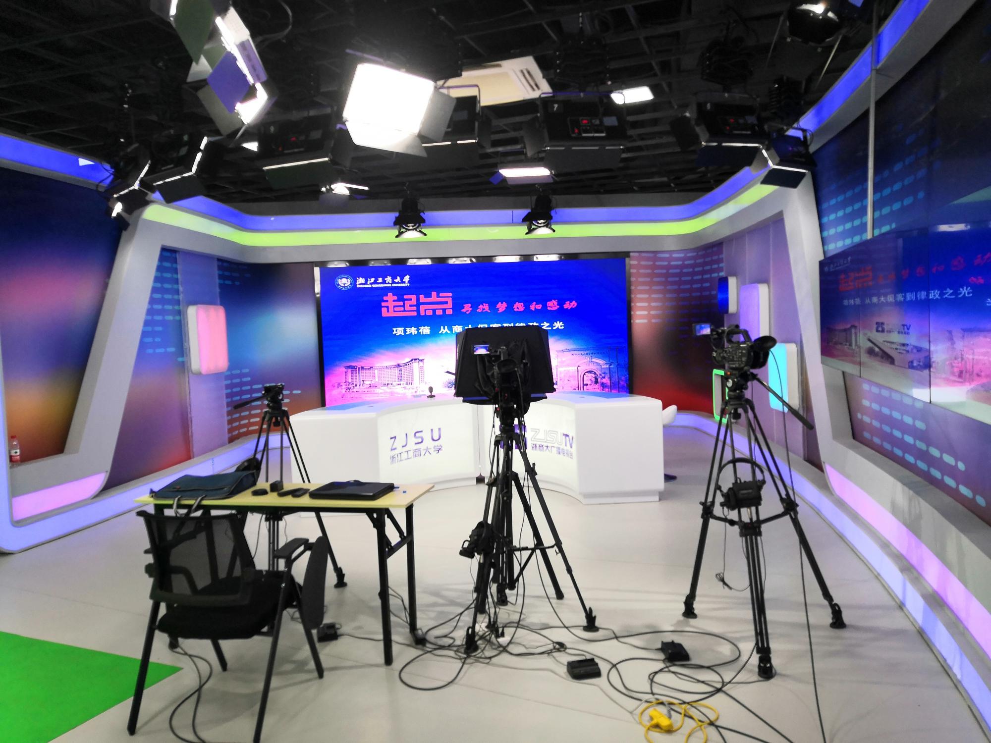 图为:浙商大教师为公司教师讲解融媒体演播室