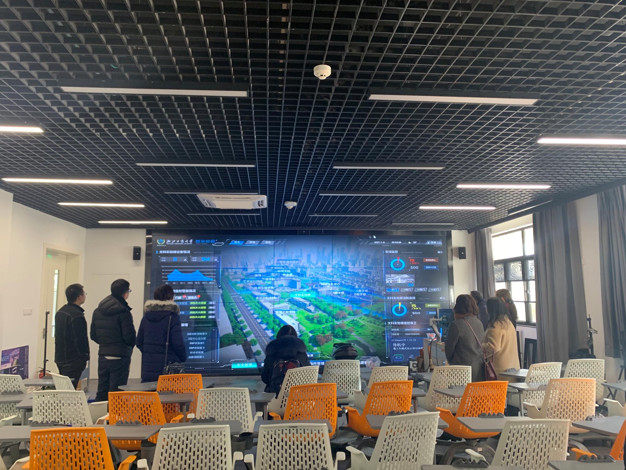 在李蓉、刘征老师陪同下,公司教师首先参观了“浙江工商大学国家级文科综合实验教学示范中心”和“融媒体演播室”,文科实验中心主管陈缘和宣传部网信办主管傅鸿州进行了细致讲解。双方同意在新文科背景下,实验室在教学过程中应承担更为重要的角色。体验了新实验室的先进设施,大家同时交流了高校实验室建设的申报、采购、立项经验。