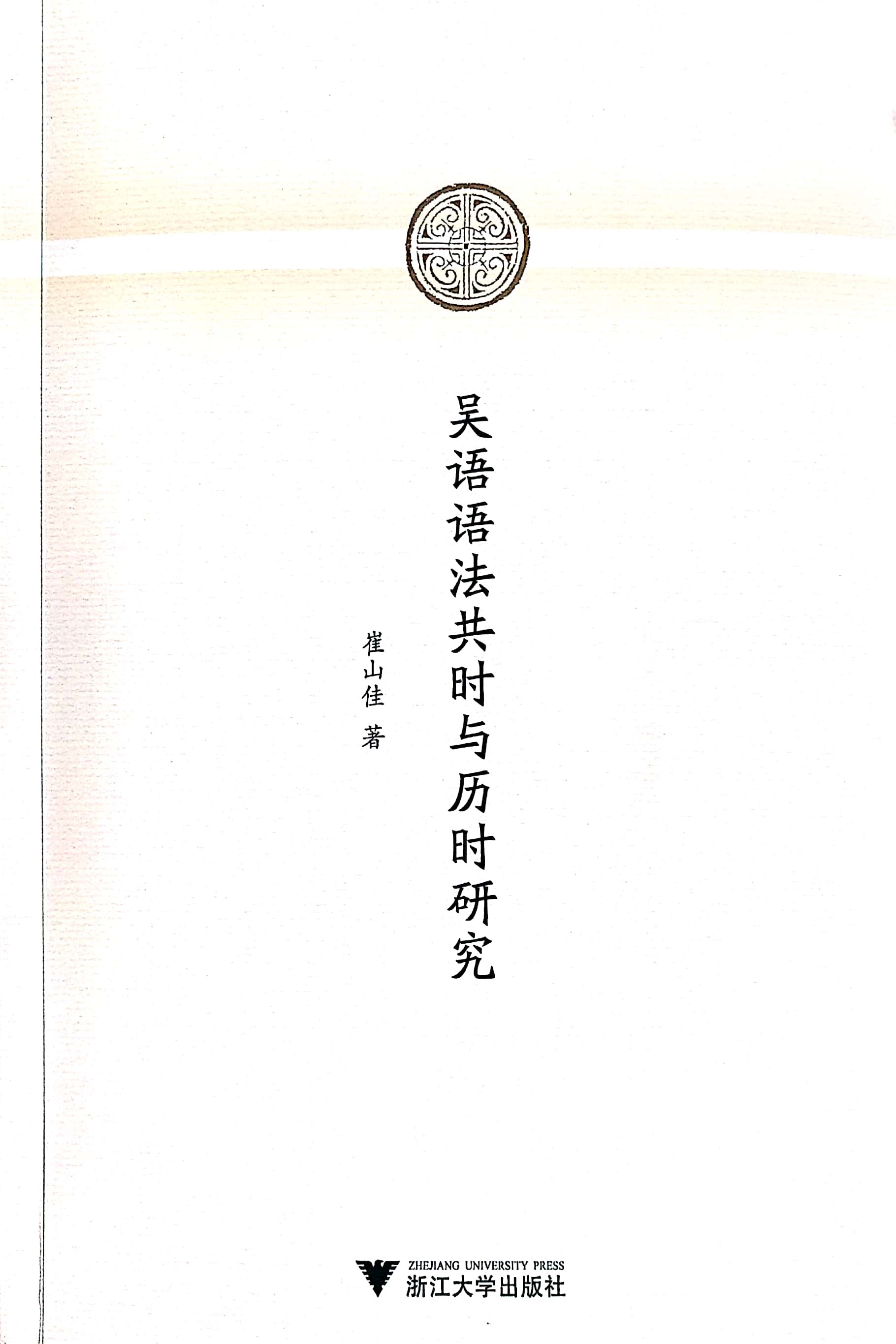 崔山佳教授专著《吴语语法共时与历时研究》已于2018年12月由浙江大学出版社出版,此书为古天乐代言太阳集团138中国语言文学一流学科学术丛刊之一种。