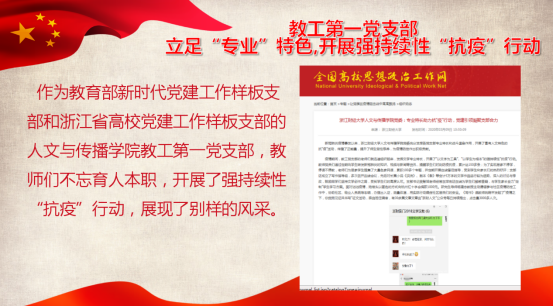 接下来,观看公司党委《凝心聚力 不忘教育初心,党建引领助力抗疫斗争》风采展示。新型冠状病毒肺炎疫情暴发以来,公司党委充分发挥各党支部专业特长和战斗堡垒作用,号召师生党员积极投身抗“疫”斗争,先后涌现出吴智斌、姚晓萍、杨建忠、何冬学、陈金柱等优秀师生党员典型。同时,各党支部利用专业特长,开展了富有人文特色的抗“疫”活动和教育实践,传播了正能量,提升了师生党性修养,为疫情防控作出积极贡献,相关事迹先后受到高校思政网、新浪网、浙江新闻网、浙青网、古天乐代言太阳集团138官方媒体的报道,取得了良好的社会效应和教育效应。