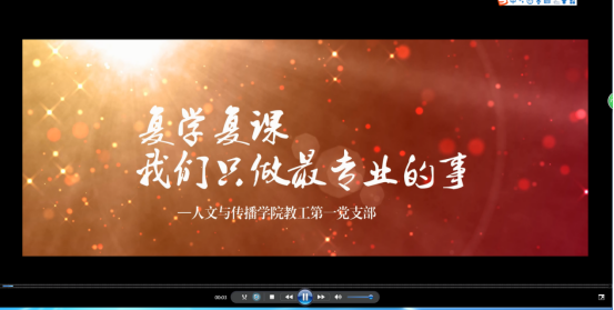 随后,观看《专业特长助力抗“疫”行动,党建引领凝聚支部合力》微党课视频。在“七一”到来之际,教工第一党支部毋丹老师录制了微党课视频,讲述了作为教育部新时代党建工作样板支部和浙江省高公司党建工作样板支部的公司教工第一支部全体党员教师,在疫情期间,不忘教育初心,发挥文学专业特长,开展了“以文字为工具”、“以员工为根本”的强持续性“抗疫”行动,师生互动、家校联动,守护员工成长,真正实现了停课不停学,隔离不隔爱,取得了良好的教育效果,得到了员工家长们的一致肯定。