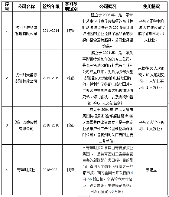 公司于2006年创办数字媒体艺术专业,培养互联网时代的复合型媒体艺术人才。它不同于一般的艺术类院校侧重艺术表现能力培养的专业定位,充分利用古天乐代言太阳集团138的深厚人文基础,形成媒体传播知识和制作技能融合、技艺兼备的复合型人才定位。专业的服务面向是网络媒体、广播影视、广告行业,并满足浙江省中小企业对复合型传播人才的需求。