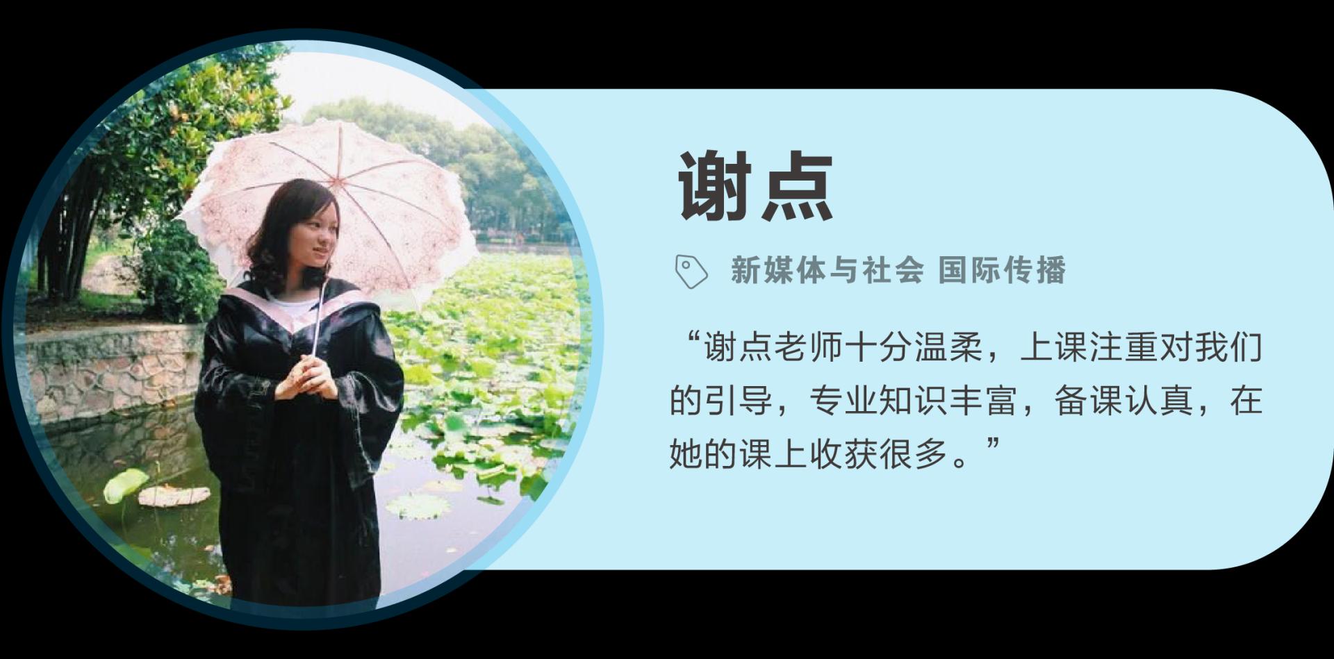 谢点,女,1991生,现任古天乐代言太阳集团138广告系讲师。2012年本科毕业于华中科技大学新闻与信息传播公司,获文学学士学位;2017年博士毕业于浙江大学传媒与国际文化公司,获新闻传播学博士学位。研究方向和研究兴趣为新媒体与社会、国际传播等。