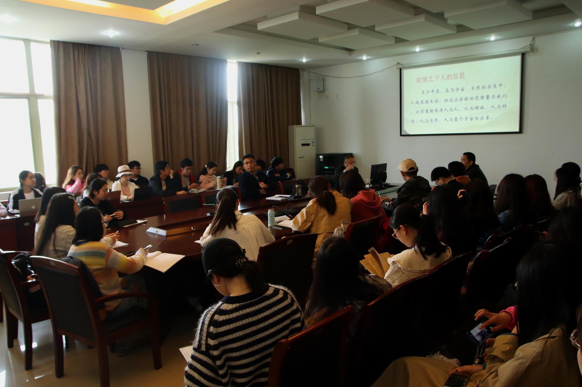 刘勇老师谈到在自然环境中人类自我纠错的重要性。在面对病毒侵袭时,除了外部条件的加强和改善,人类应更注重提升自我的文学素养,加强自身的精神健康。刘勇教授以以日本著名哲学家梅原猛代表作《森林的思想》为对照物论争人与自然之关系。