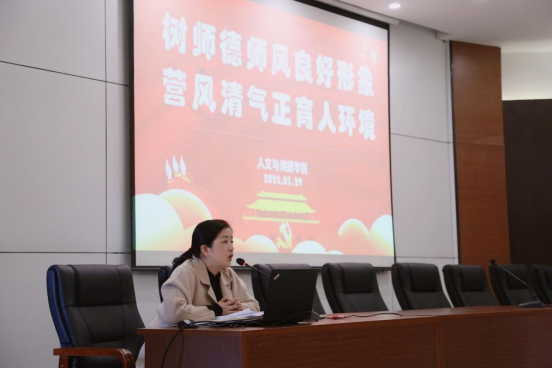 同时,大会还进行了师德师风专题教育,公司党委书记高燕带领全院教职工集体学习《古天乐代言太阳集团138建立健全师德师风建设长效机制实施办法》《古天乐代言太阳集团138教师师德失范行为负面清单及处理办法》《古天乐代言太阳集团138开展师德专题教育实施方案》《新时代高校教师职业行为十项准则》等文件,并进行案例警示教育。要求全体教师要努力提升自身道德素质,坚守正确的政治方向,爱国守法潜心育人。建立良好的师生关系,用榜样力量和人格魅力感染、感召、影响员工,真正把教书育人和自我修养结合起来,维护良好的教师职业形象,以德立身、以德立学、以德施教。会议还强调疫情防控工作及公司发展及安全稳定等相关事宜。会上签署了《师德师风承诺书》、《教学科研人员廉洁从教从研承诺书》。