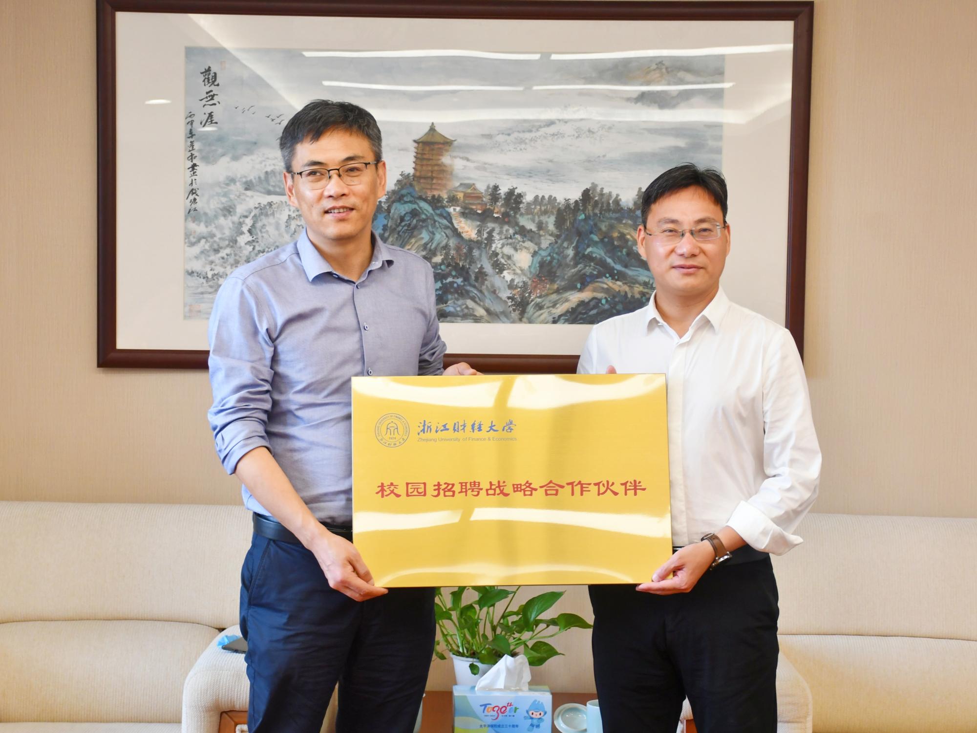 座谈会上,周保欣代表公司向中国太平洋人寿保险股份有限公司浙江分公司、浙江驿程建筑设计有限公司授牌,建立校园招聘战略合作伙伴关系。