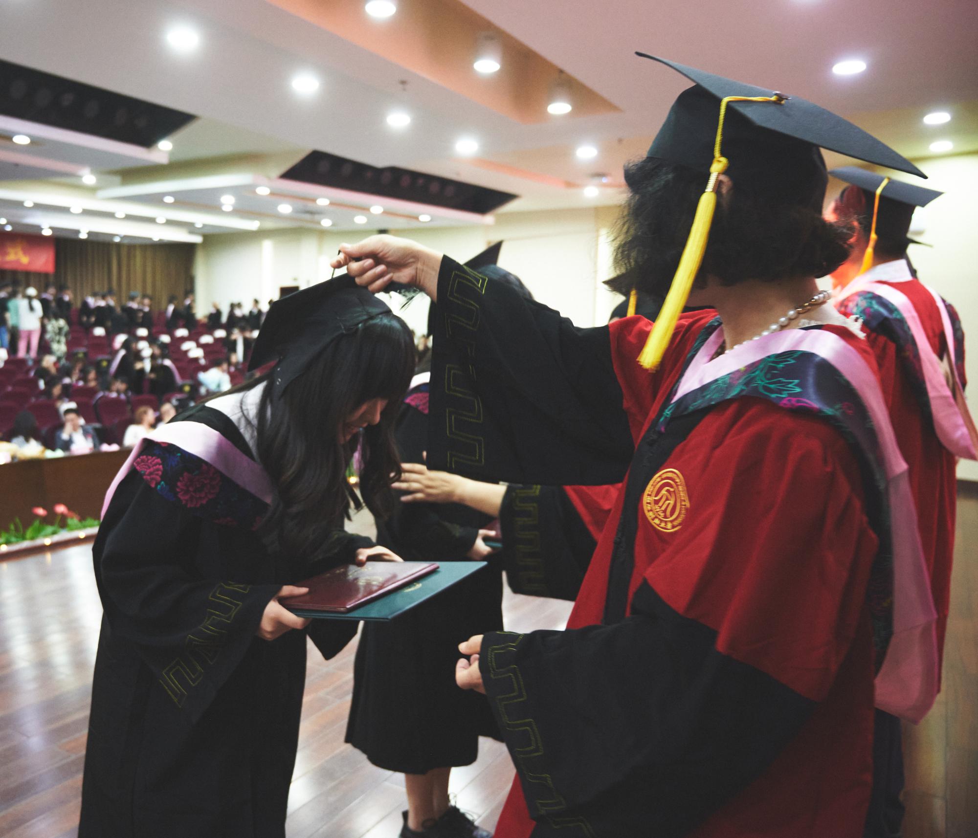 “饮水思源,成才念师。”四年光阴虽短,然师恩永存,感恩师栽培,今以礼谢之。在典礼上,教师代表赵顺宏、汤燕君、胡梦颖、史婷婷、董建华、洪艳、王阿蒙老师上台,接受七位毕业生敬茶,全体毕业生双手握于胸前,面师而立,行三拜之礼。小小的一杯茶、一行礼,饱含着毕业学子深深的感激之情。
