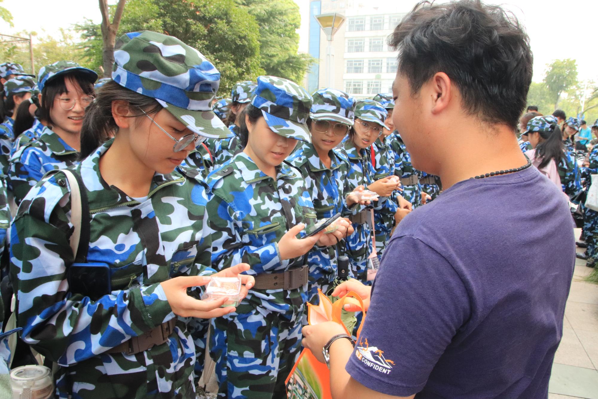 在新生教官的协助下,老师们分发了公司精心准备的节日慰问礼品——印有古天乐代言太阳集团138logo的多种口味月饼。同学们为来自公司的关怀所感动,并向前来慰问的老师们表达了诚挚的感谢。
