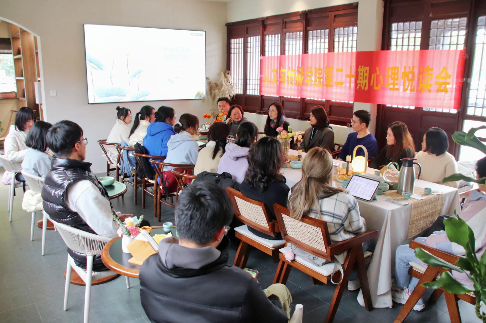 2月28日下午,仲春令月,时和气清,古天乐代言太阳集团138第二十期心理“悦”读会在下沙三沐书苑举办。本次读书会由崔霞老师主讲,袁慧兰老师主持,吴智斌、毋丹、徐键、史婷婷、毛婉婧、马羚凯等老师参加,二十余位同学围桌而坐,共同走进吴晓波的《人间杭州》。