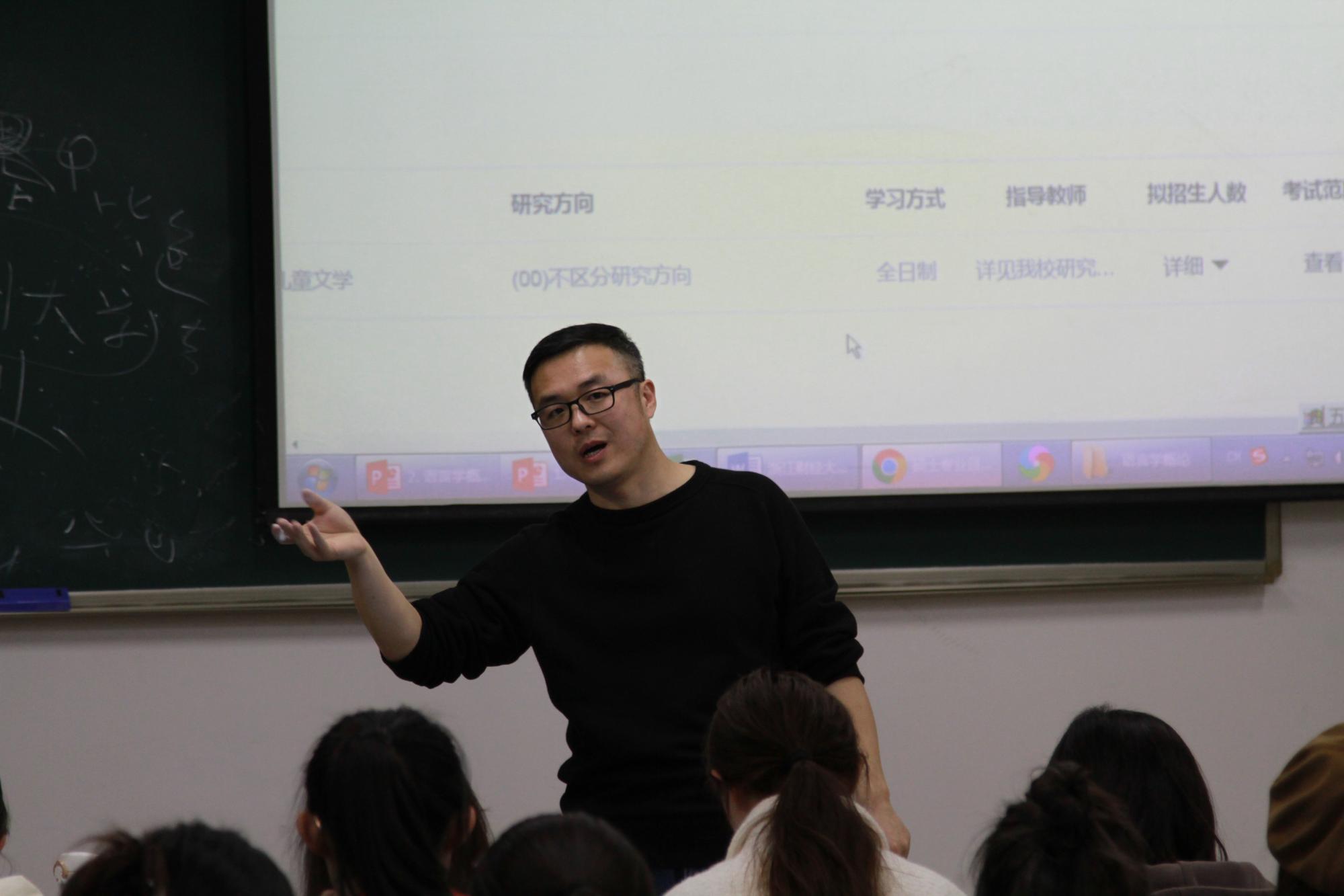 首先,王泉老师向同学们多方位多角度介绍了汉语言文学专业选择出路很广泛,例如考研、国考、省考、事业单位考试、教师编考试、留学以及可以选择自己热爱的工作。王泉老师强调汉语言文学是一门包容性极强的专业,准大四的员工们应该尽快做出属于自己的职业抉择,为之奋力踔发,笃行不怠,朝着目标砥砺前行。