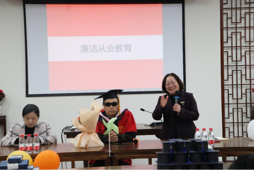 明朝即长路,惜取此时心。周经理和高书记代表公司为毕业生送上公司专属定制礼物,表达公司对毕业学子的深切关心。随后袁老师为毕业生开展了廉洁从业教育,以期毕业学子在未来工作与生活中循梦而行、向阳而生。伴着最后的师生交流活动,毕业座谈会慢慢接近尾声,毕业生与昔日深切教诲的老师回忆美好,畅谈未来。