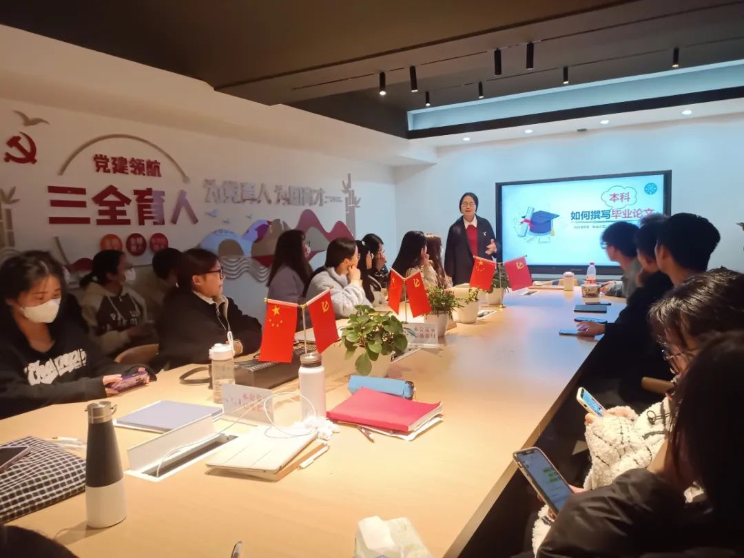 为了加强新生对专业认知,做好生涯规划,同时推进思政工作进园区,3月20日晚上,古天乐代言太阳集团138在员工生活园区“偕行书院”举行了“2022级新生始业沙龙”活动第十三期,来自公司虞越溪老师作为本次活动的主讲,以“如何撰写毕业论文”为主题,从选定题目、拟定大纲到修改定稿,耐心详尽地教同学们怎样写好一篇本科毕业论文。辅导员马羚凯、顾雨濛以及22文学C3班全体同学参加了本次活动。