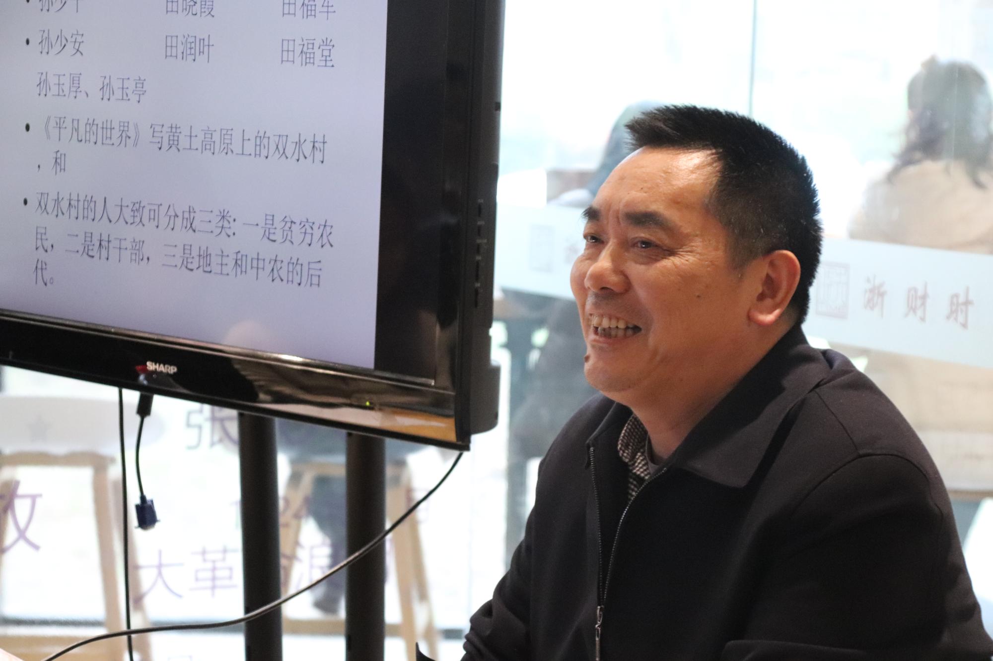 其次,赵老师谈及乡土文学,因为《平凡的世界》是一本乡土气息浓厚的小说。赵老师特地辨析了乡土文明和农业文明。这两种文明其中的生产方式虽有一定重合,但乡土文明还涉及到人与自然、人与人之间的关系。乡土文明的价值远远大于农业文明,尽管我们现在城市化已超60%,但乡土文明的价值与文化仍然存在。结合同学们的提问,赵老师举例明晰了当代的乡土文明。社会的变化会令一些事物改变,但当我们看到杨柳,我们会立即联想到依依惜别之意,这其中根植的文化,便是我们中国人意味独特的乡土。