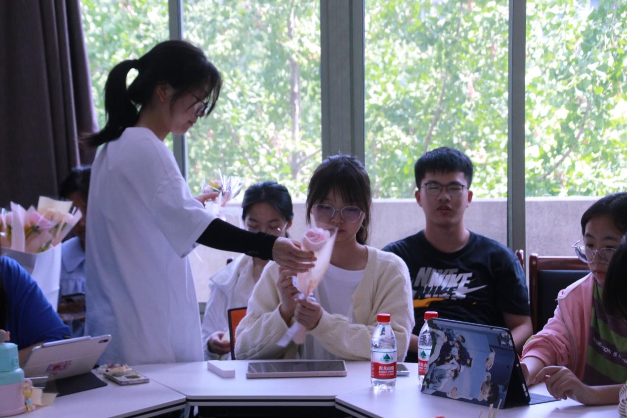 仪式感点亮生活,心理辅导站为每位同学准备了一支玫瑰花,开启本学期最后一次的读书会。在发放玫瑰花之时,同学们进行了自我介绍,读书会的氛围逐渐活跃。