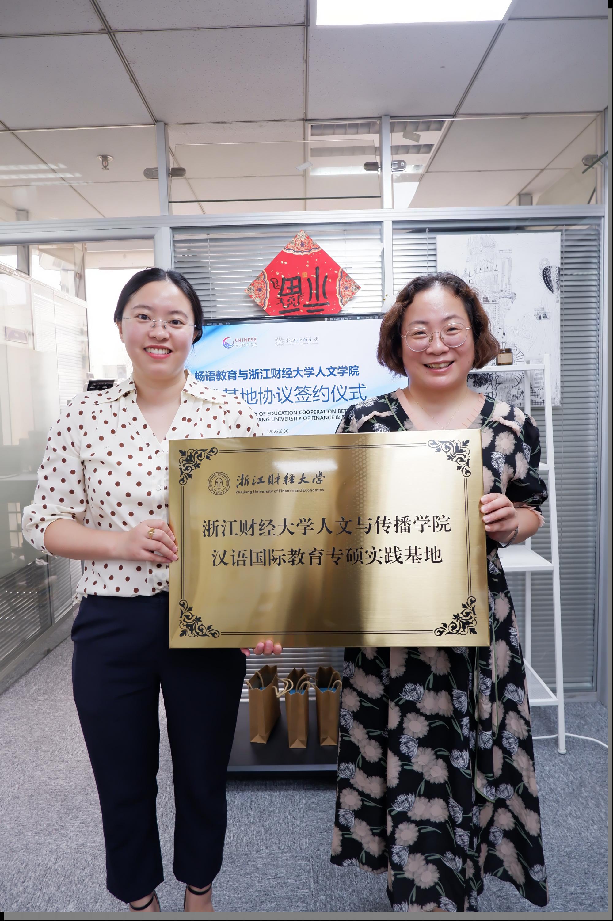 座谈后,孙德平教授代表汉语国际教育专硕点与畅语教育咨询公司成功签署校外实践基地协议书,袁老师进行实践基地授牌。
