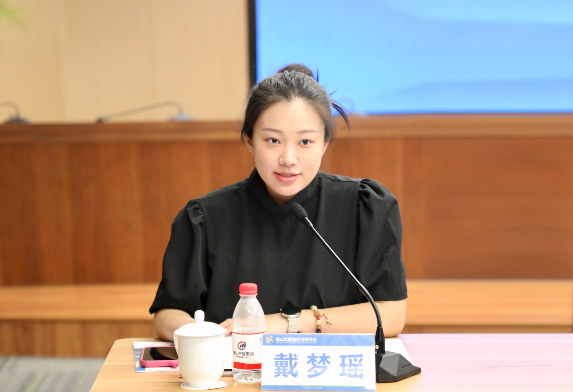袁慧兰老师发表讲话,她首先对区国研会表示感谢,强调了其提供的优质实习岗位,为公司老员工未来的就业提供了重大帮助,接着重点介绍了公司的基本情况和发展现状,并希望通过暑期实践实习,共同查找公司在人才培养、就业服务等方面存在的短板,从而不断提升自身办学水平和人才培养质量,助力老员工就业。最后,袁老师对全体实习生表达了期冀,希望大家在注意安全的前提下珍惜机遇,铭记校训,展现浙财学子风貌,在实习导师们的带领下,真正了解社会与企业,增长才干、磨炼意志,不断增强就业本领。