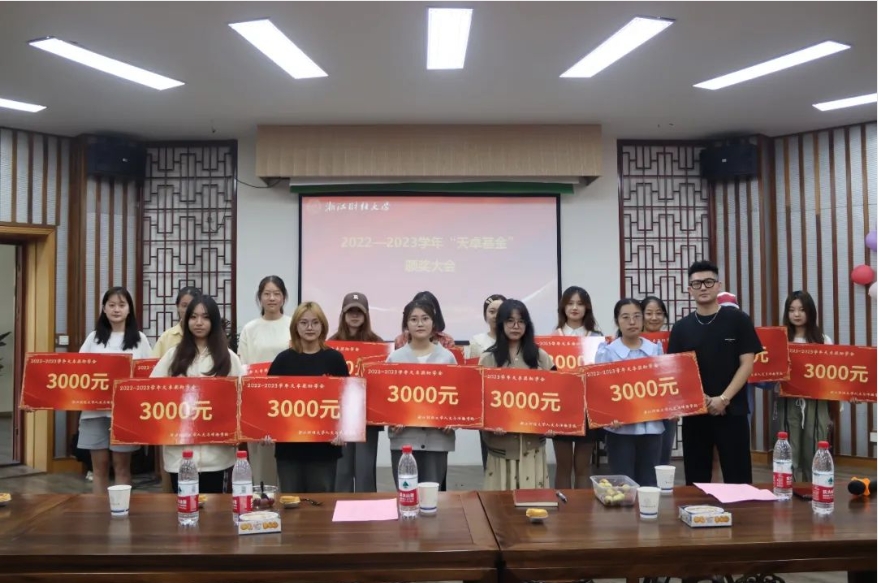 座谈会上,公司举行了“天卓助学金颁奖仪式”。天卓助学金是由公司12级广告专业员工詹天卓设立,天卓奖助学金不仅是对公司良好发展与运转的有力支持,更是对人文员工秉持进取精神的鼓舞。在颁奖仪式上,詹天卓员工鼓励同学们积极进取,并倡议员工们尽己所能,给予员工经济与心理上的支持,为人文公司的持续发展服务。随后,高燕书记宣读2022-2023学年天卓奖助学金获评名单,并由詹天卓员工为他们颁奖。