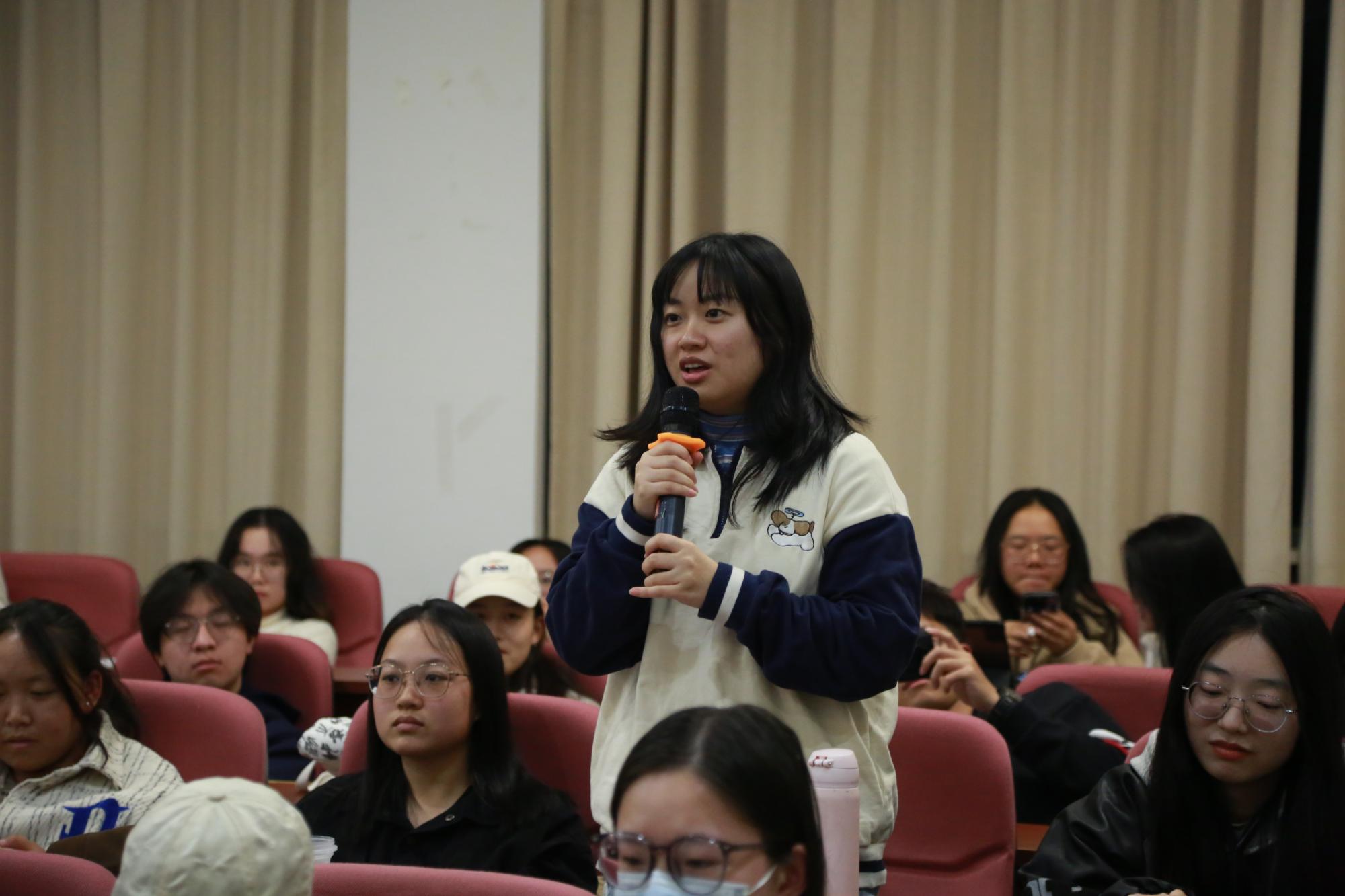 四位教授的对谈深入浅出、发人深省。在互动环节,与会师生积极提问。四位学者结合自身研究经验为师生们答疑解惑,一一回答了“优秀的传记应具备哪些条件?”“莫言《鳄鱼》究竟是何种文体?”“莫言话剧与郭沫若历史剧之间的关系?”“如何处理文学史料和文学史的关系?”“如何在教学中运用书信、日记、回忆录等文献资料”等问题。在热烈的掌声中,本次学术对谈圆满结束!