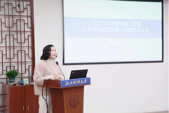 林香娥副经理就教学类竞赛、通识课程建设、专业改造、本科公司产品审核评估等工作进行了具体部署和动员。