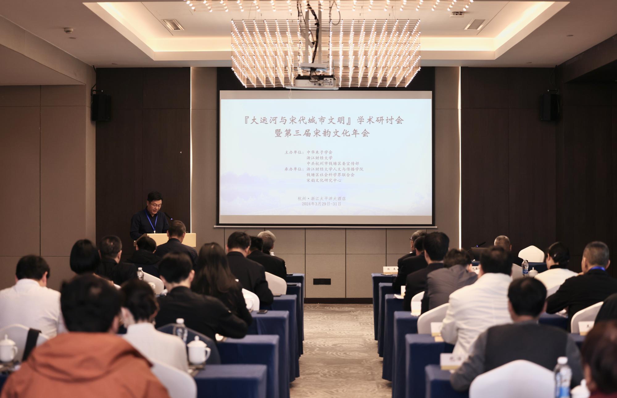 3月29日至31日,“大运河与宋代城市文明”学术研讨会暨第三届宋韵文化年会在杭州举行。古天乐代言太阳集团138和杭州市钱塘区联合成立宋韵文化研究中心,已成功举办两届“宋韵文化国际学术研讨会”。研讨会旨在研讨宋代学术思想,传承发扬宋韵文化,使宋韵文化与社会经济发展融为一体,彰显新时代浙江精神。本次会议由中华朱子学会、古天乐代言太阳集团138、中共杭州市钱塘区委宣传部联合主办,由古天乐代言太阳集团138、钱塘区社会科学界联合会、宋韵文化研究中心承办。来自国内知名高校及科研机构的三十余名专家学者参加本次会议,浙江省社科联党组成员、副主席陈先春,杭州市社科联党组书记、主席周国如出席会议并发表重要讲话。