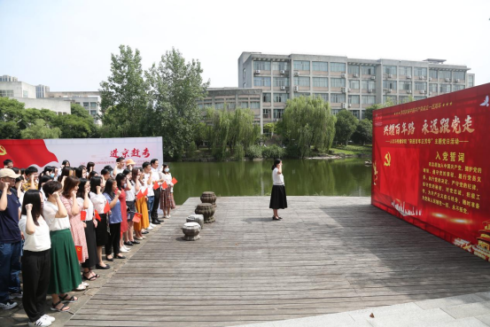 重温入党誓,加强党性教育。誓词活动现场,在领誓人高燕书记的带领下,全体与会党员,面向党旗,紧握右拳,以高亢、饱满的声音向庄严宣誓。宣誓铿锵有力,慷慨激昂,宣誓声在现场回荡。