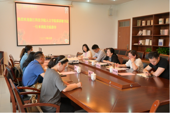 6月6日下午,浙江科技公司人文公司党委书记邵莉敏、党委副书记郭峰一行5人来公司调研交流。公司党委书记高燕、党委副书记袁慧兰及办公室、学工办等相关人员参加座谈交流。