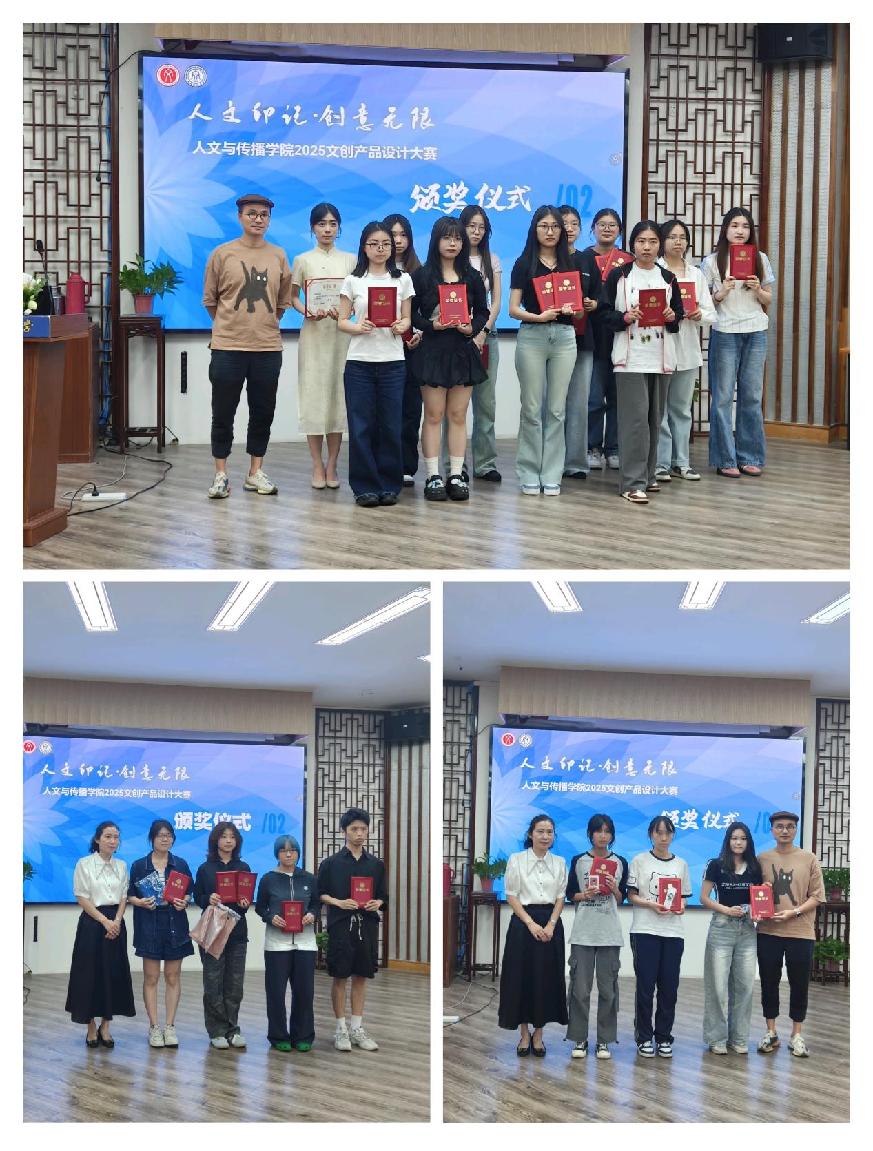 颁奖典礼在温馨而热烈的氛围中拉开帷幕。董建华老师为三等奖获奖同学颁奖;罗金艳老师为二等奖同学颁奖;最后,两位老师共同为一等奖获得者授予荣誉。现场播放的激昂音乐与礼仪同学的优雅举止,为仪式增添了庄重与喜悦。获奖的同学们,还可以拿到自己设计的文创产品实物,亲历自己的心血从图纸到实物的过程。