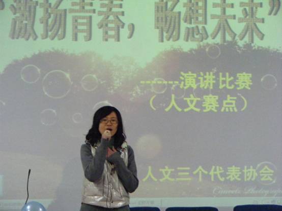 “青春是一首歌,跌宕起伏;青春是一幅画,色彩缤纷;青春是所有人心底最美丽的回忆。”这些对青春如诗如画的描述,有没有唤起你对青春最菁华的记忆?”12月12日下午,人文公司在112教室里举行了一场以“激扬青春畅想未来”演讲比赛。大赛邀请到了人文公司员工会副主席周旭明、人文公司三个代表协会负责人顾菊菊等做大赛评委。虽然冬雨让气温下降了好几度,但却没有浇灭同学们参赛观赛的热情。教室里人头攒动,场面热闹非凡。