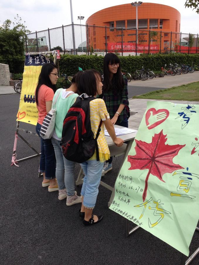 25日中午,在经过一系列有条不紊的考证准备之后,宣传活动正式开始了。各位小干事们在文化长廊准时集合,积极参与对于他们来说的初次活动。在这次活动中,虽然小干事在向人介绍时有些拘谨和生涩,但经过反复的宣传介绍逐渐变得熟练起来。