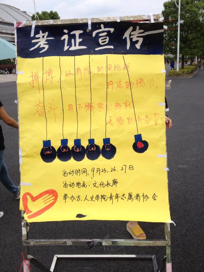 26日中午,小干事们掌握了一点昨日的宣传技巧,宣传热情高涨。各位在校老员工基于昨日对“考证宣传”的初步认识,了解了他们所适合所需要考的证书,使宣传效果明显加强。27日,“考证宣传”画上了圆满的句号。