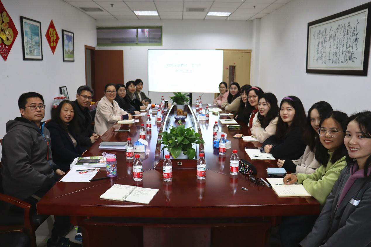 为提升公司汉语国际教育硕士培养质量,搭建专业实践平台,增强对外汉语教学能力,3月16日下午,公司经理助理吴智斌、汉教专硕负责人刘传鸿、研究生秘书刘华婷及8位2020级汉硕实习生前往国际公司,同国际公司经理助理赵倩、教研室主任夏群、教研室副主任贾芹、创新创业中心主任金德锋等举行了一场师生交流见面会,受到了国际公司的热情招待。会议期间,双方围绕实践形式、实践内容和实践要求进行了初步探讨。